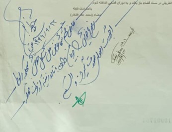 ظاهراً معلوم می شود که محکمه حتی بر وثیقه صادره و حصر وراثت تبیین کرده خودش شک و تردید دارد و با جعل شهادت مضاعف این افراد؛ گویا آن را مؤثق تر می گرداند!